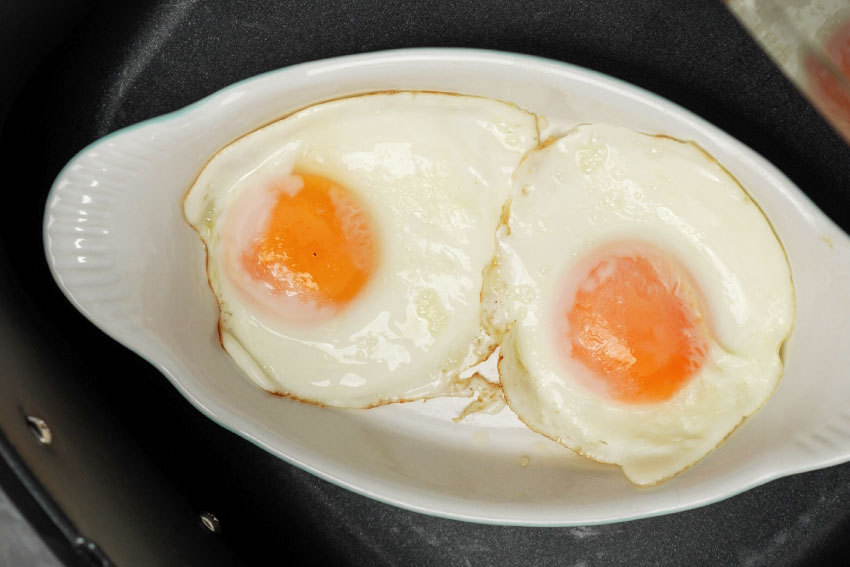 - Quebre o ovo delicadamente sobre a superfície untada.