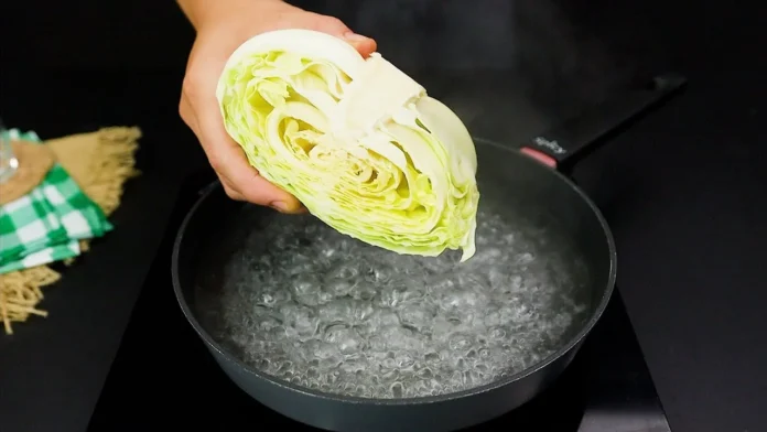 • Coloque o repolho em água fervente e deixe cozinhar por 2 minutos.